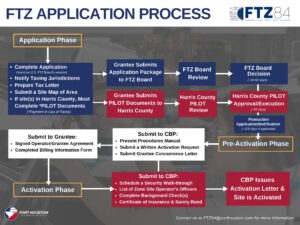 The process of obtaining Foreign Trade Zone status begins by first contacting the Port Houston Economic Development team. The Port assists with the application process, and can help companies locate consultants with the specialized knowledge for an in-depth evaluation of the risks and benefits associated with operating in a Foreign Trade Zone.