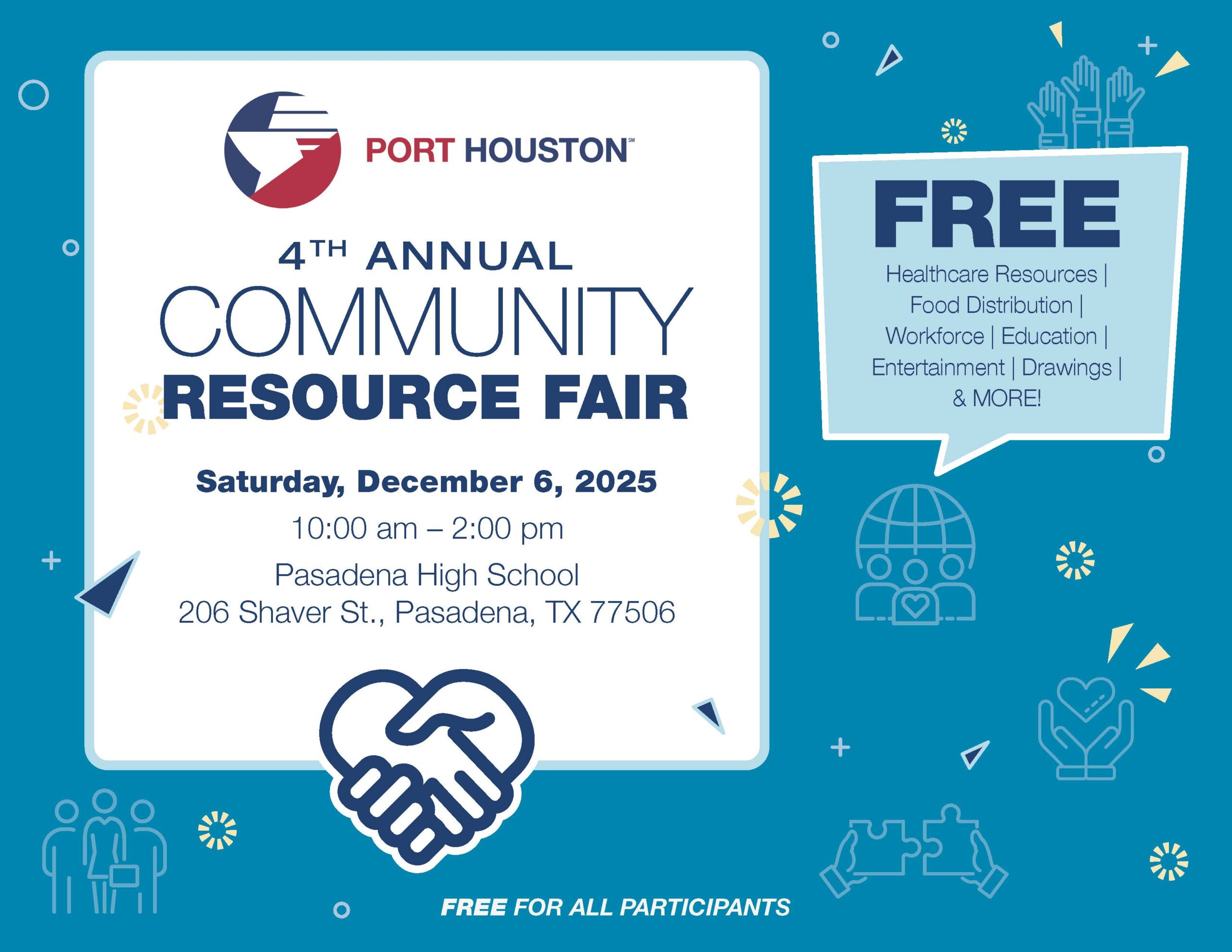 At the heart of the Houston Ship Channel are the families, workers, and neighborhoods that make it strong, and Port Houston’s Community Relations department is proud to serve them. The Community Resource Fair is one way we show that commitment in action. This free event brings vital services directly to the people who need them most, creating a space where support, opportunity, and connection come together for the good of our region.